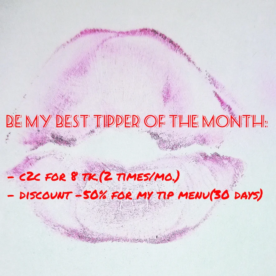 Be my best tipper of the month: - c2c 8tk/min (2 times/mo) - discount for my tip-menu -50% (30 days)